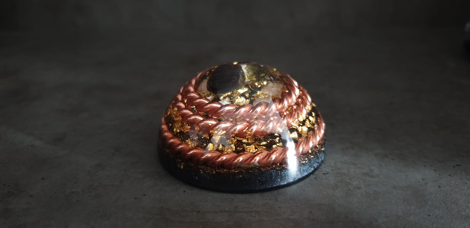 EMF 5G protection Orgonite orgone pendant, Herkimer, Elite Shungite, Black Tourmaline, 24k gold, copper, brass