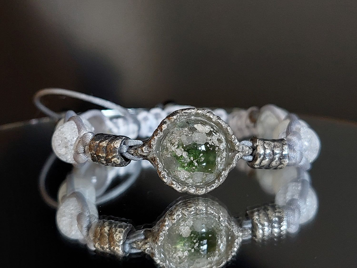 Orgonite bracelet - Moldavite, Herkimer, diamonds, black Tourmaline, 24k gold, brass