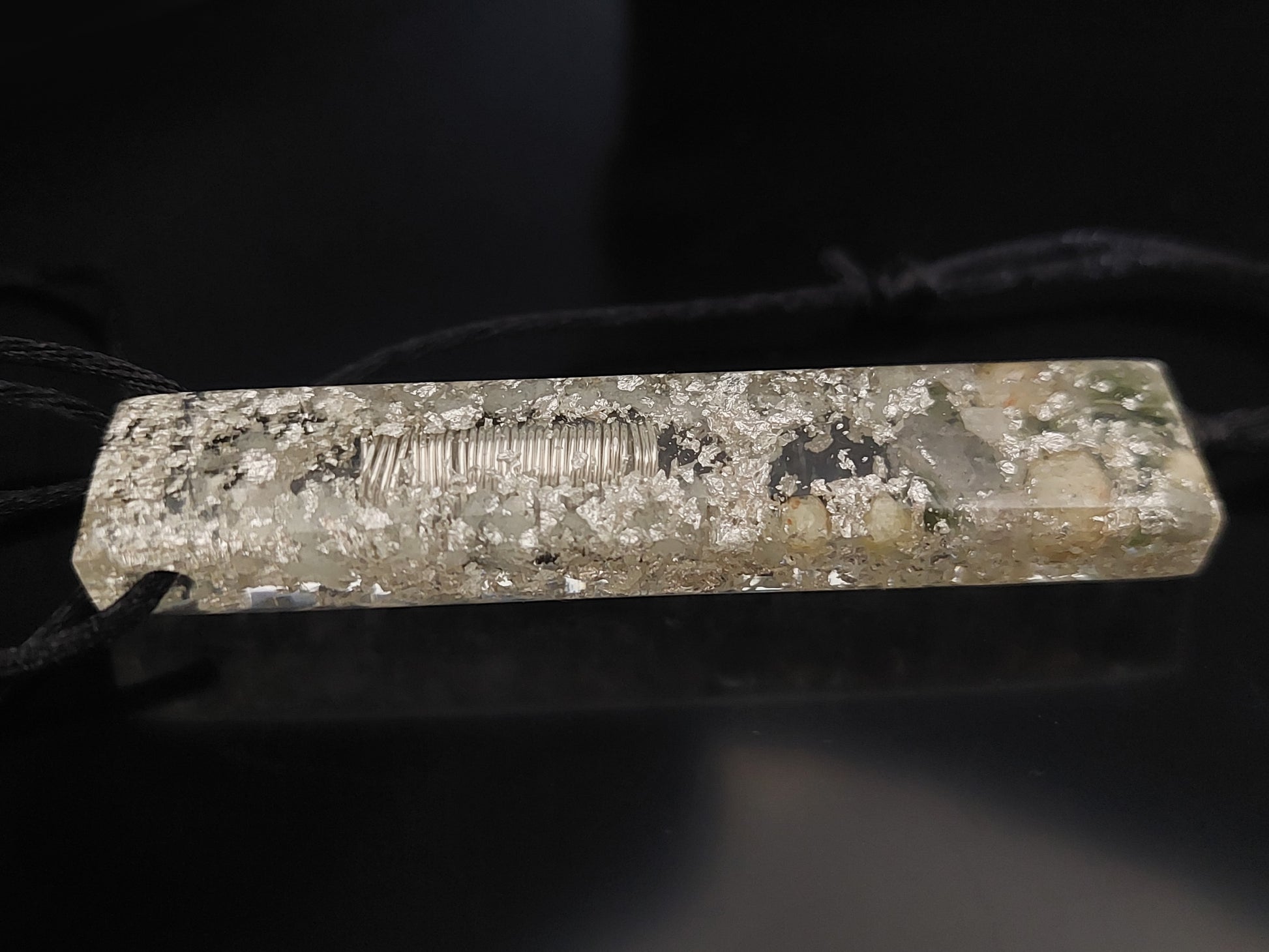 Orgonit-Anhänger, Halskette, Amulett, Charm mit Diamanten, Moldavit, Herkimer, Rhodozit, im Dunkeln leuchtendes Orgon. Größere Größe!