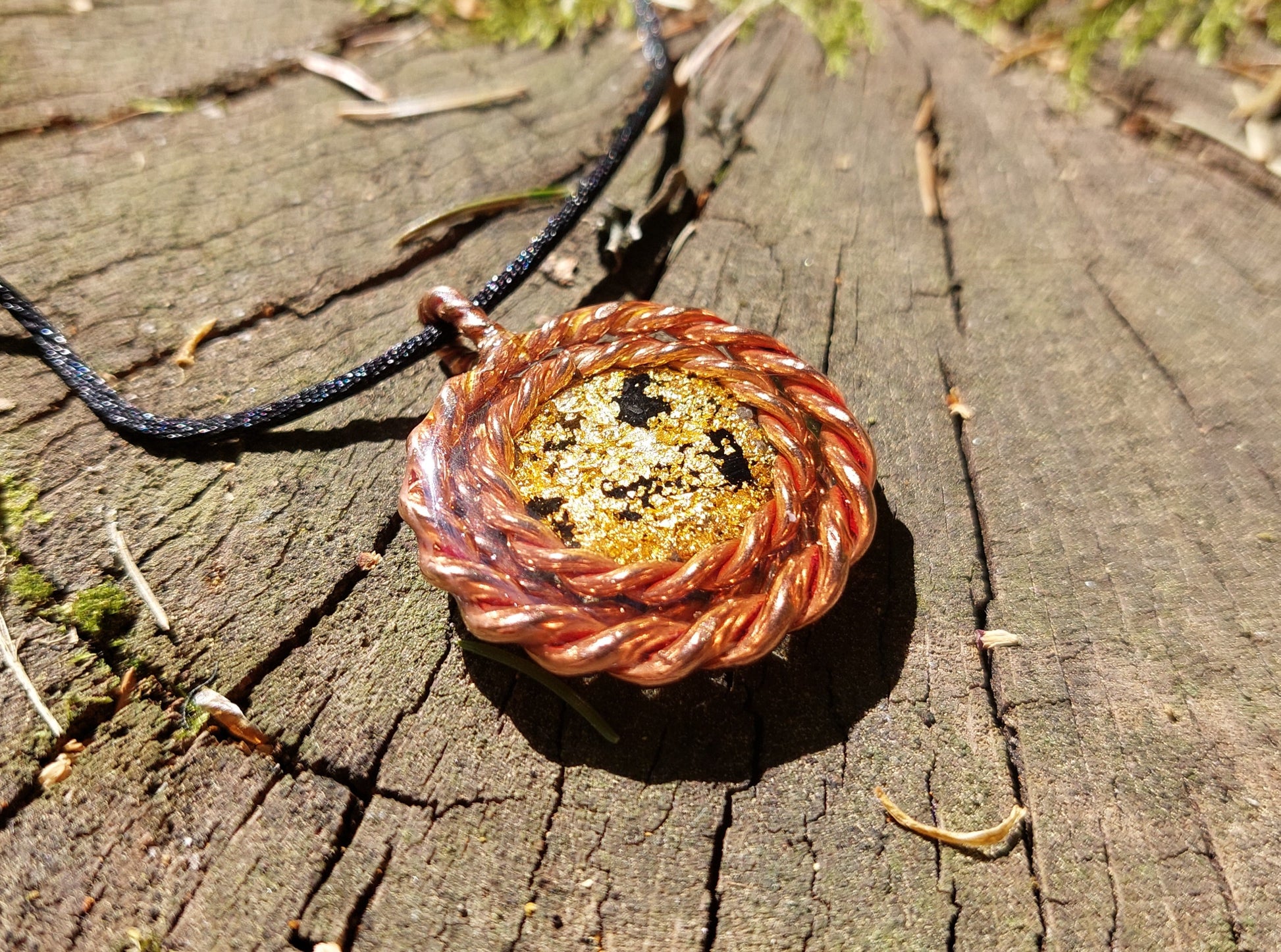 Metales: bobina de cobre, oro real de 24k;