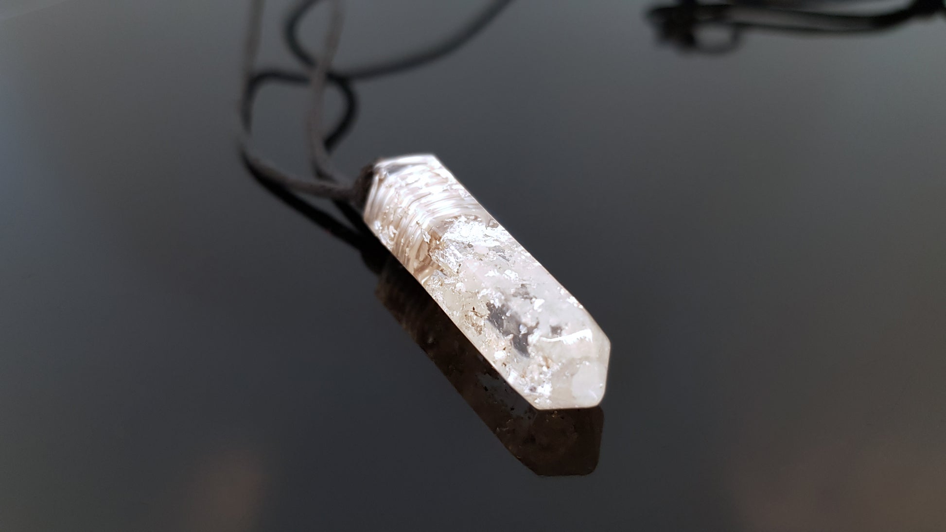 Potente colgante de 4 cristales de alta vibración: diamantes naturales y reales, diamante Herkimer, diamante Pakimer y Danburita. Este es un colgante muy especial elaborado a partir de 4 cristales potentes y de altas vibraciones. Este colgante ayudará a elevar la vibración de tu cuerpo, activará el tercer ojo y los chakras de la corona, profundizará la meditación y ayudará a manifestar tus sueños.