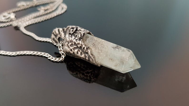 Los cristales y piedras utilizados en mis amuletos son únicos y diferentes en forma y tamaño, por lo que los amuletos pedidos pueden ser ligeramente diferentes de la muestra de la imagen. El amuleto está incrustado en un marco de plata pura hecho a mano, por lo que este marco puede ser ligeramente diferente para los colgantes personalizados. Cada marco plateado está hecho a mano y es único.