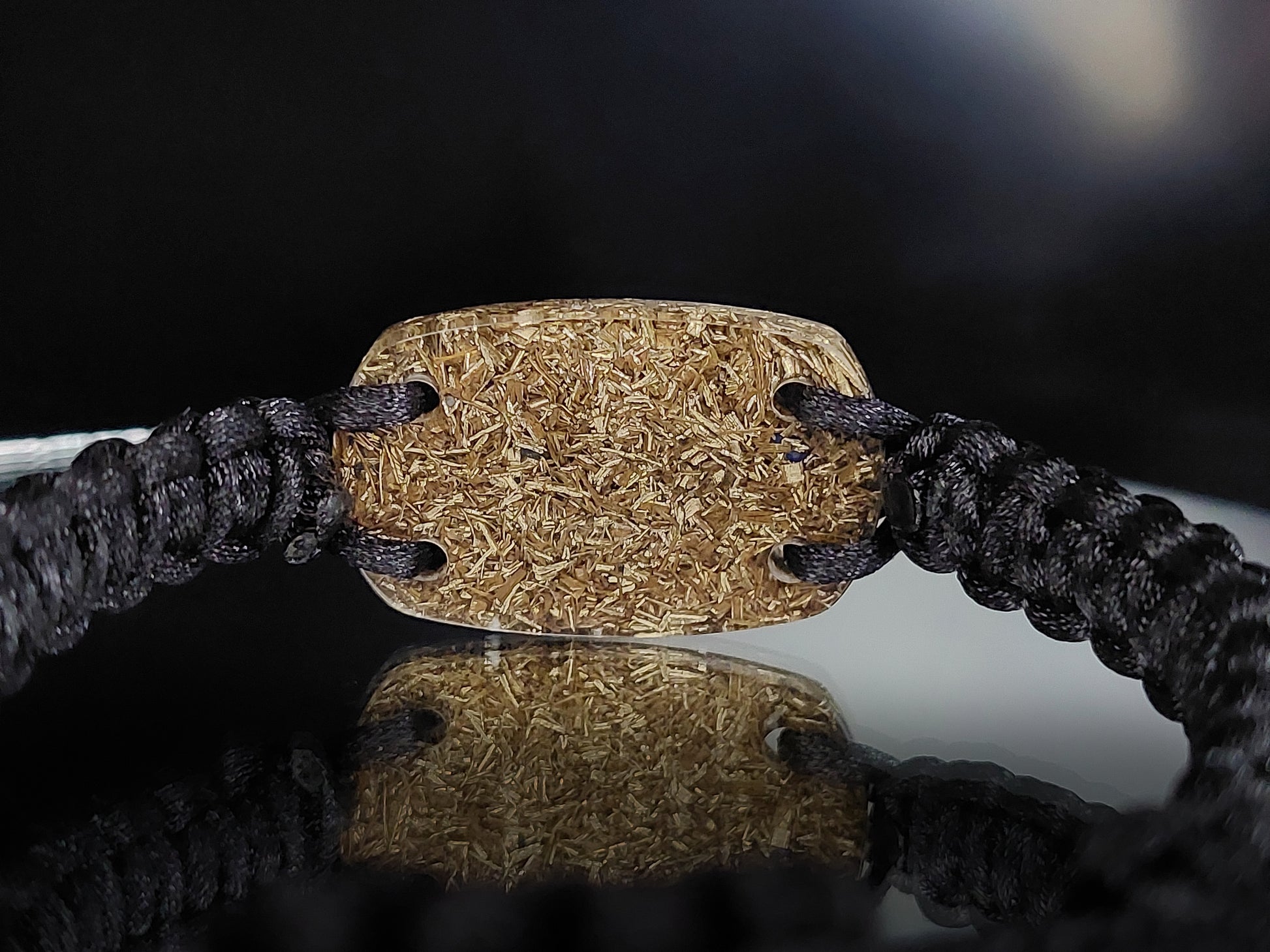 Dimensiones del orgón (aprox): 3cm x 1,8cm (1,2"x 0,7"), cordón ajustable de cuero natural o nailon