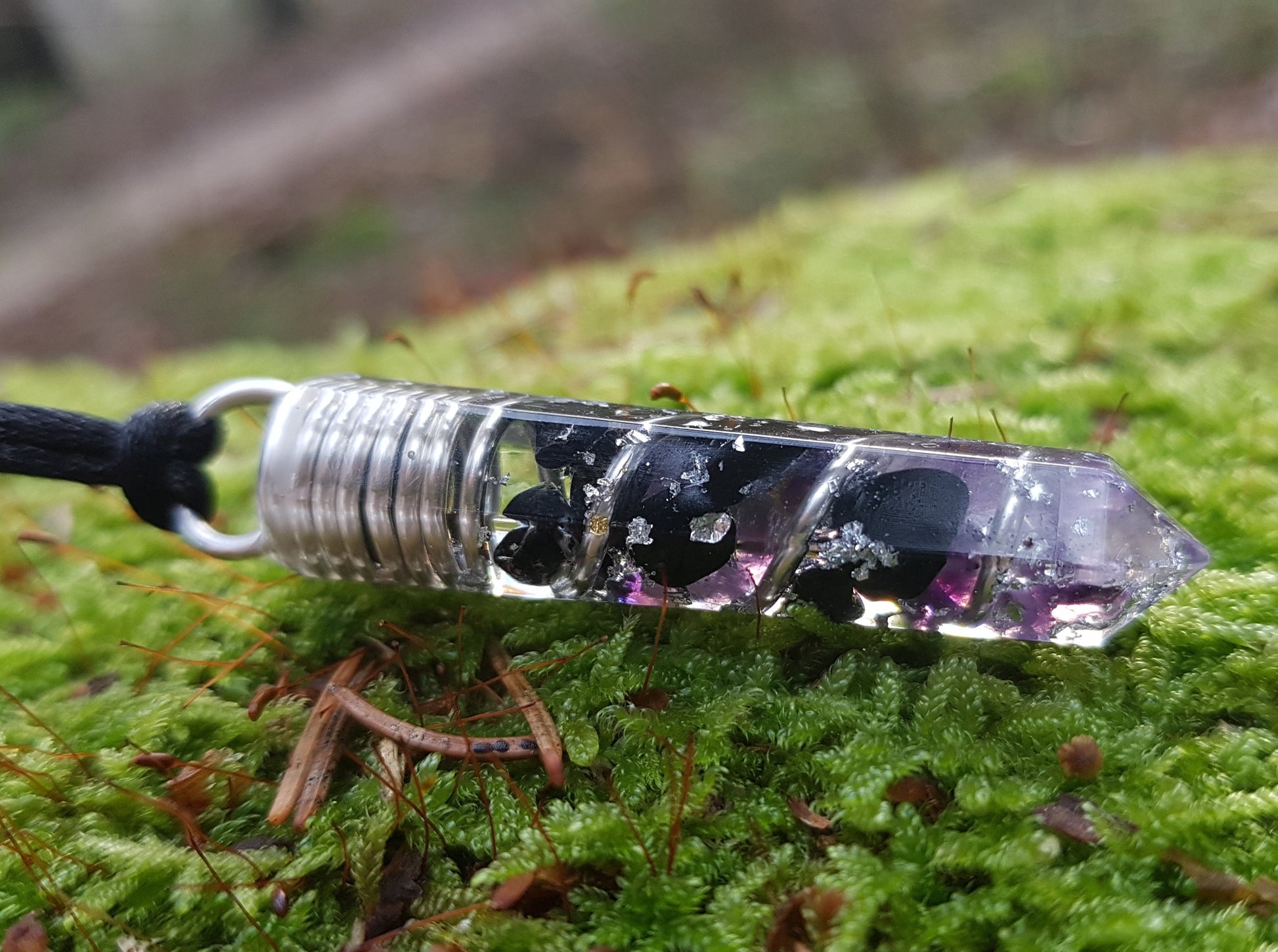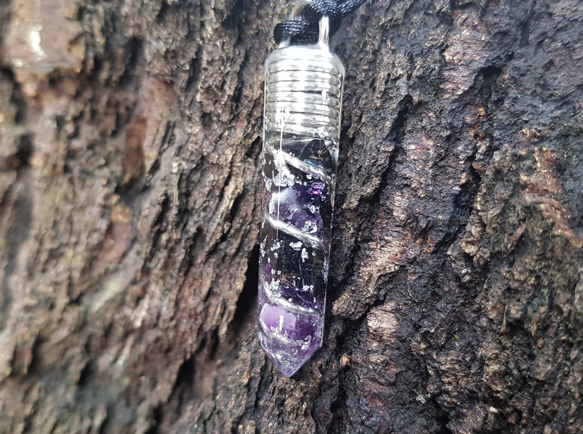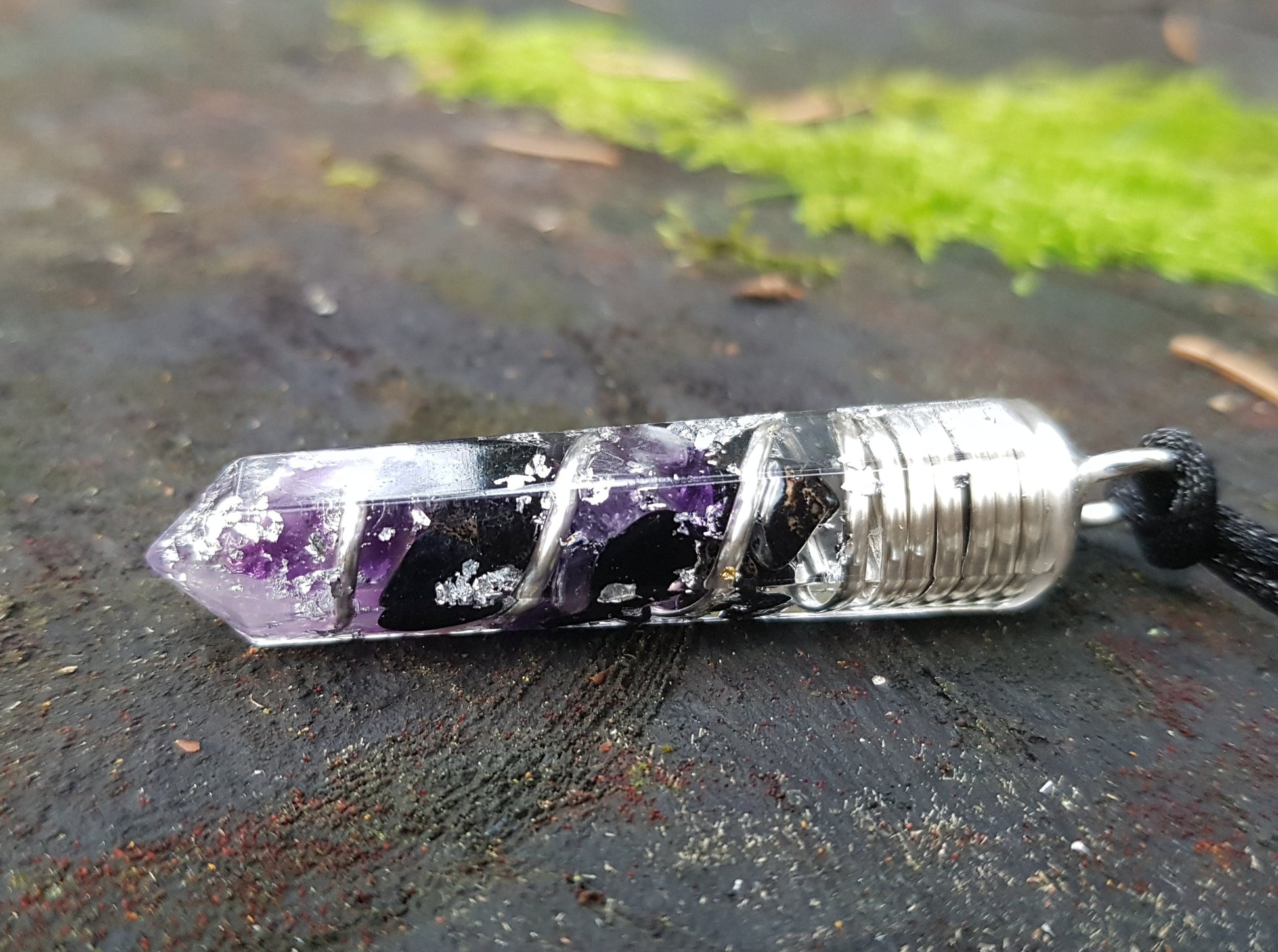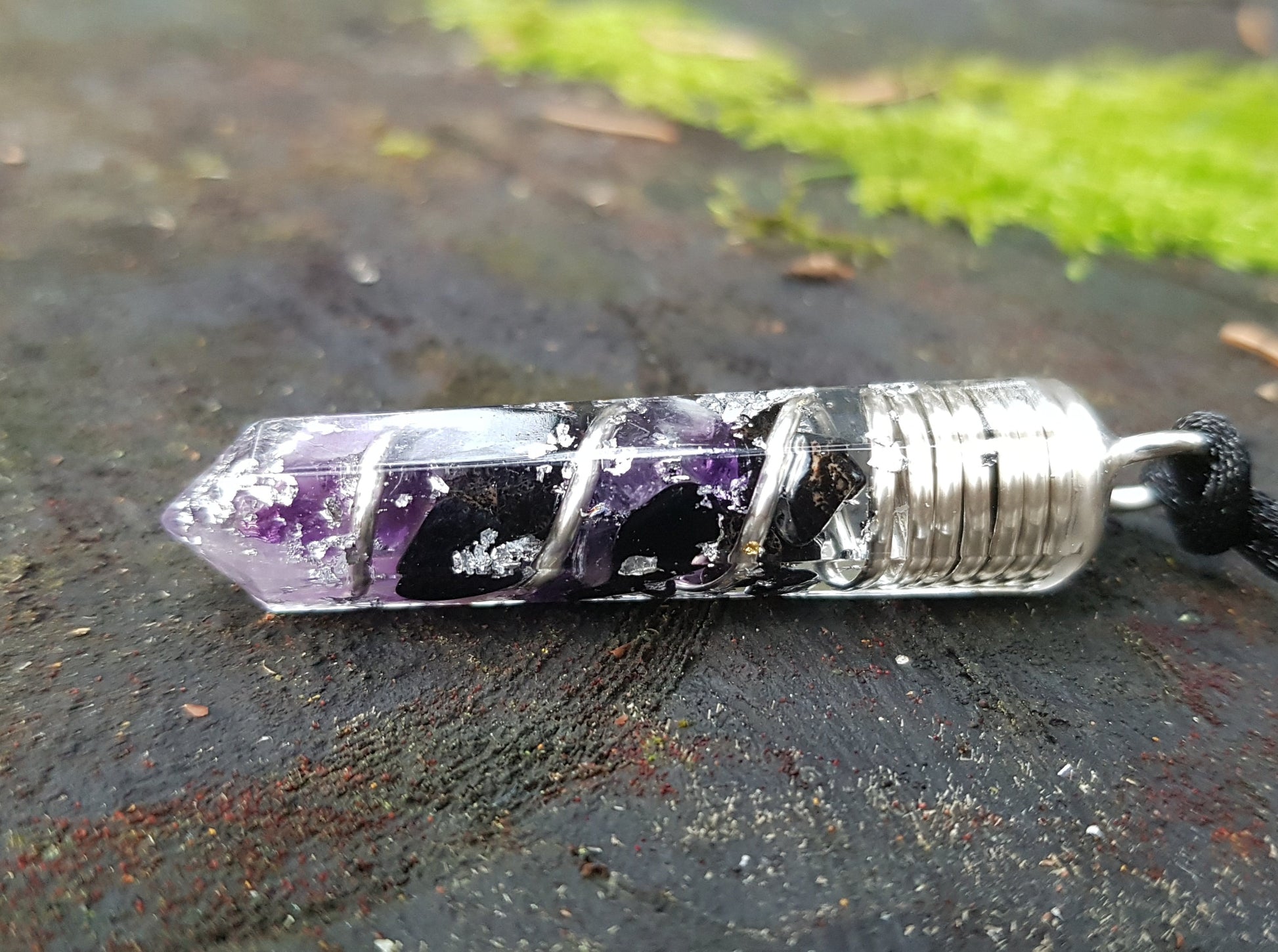 Collar colgante Orgonita Orgone, Turmalina Negra, Amatista, plata - amuleto programado, curación con cristales Reiki, protección EMF. Este colgante está hecho de Turmalina Negra natural, Amatista y plata de ley 925. Esta es una de mis combinaciones favoritas: cristales fuertes combinados con plata de ley. Recomiendo elegir programas como salud, crecimiento espiritual, protección o armonía para este amuleto. Esta es una gran combinación para quienes están comenzando a profundizar en el mundo del esoterismo, así como para quienes necesitan protección adicional contra diversas influencias negativas.
