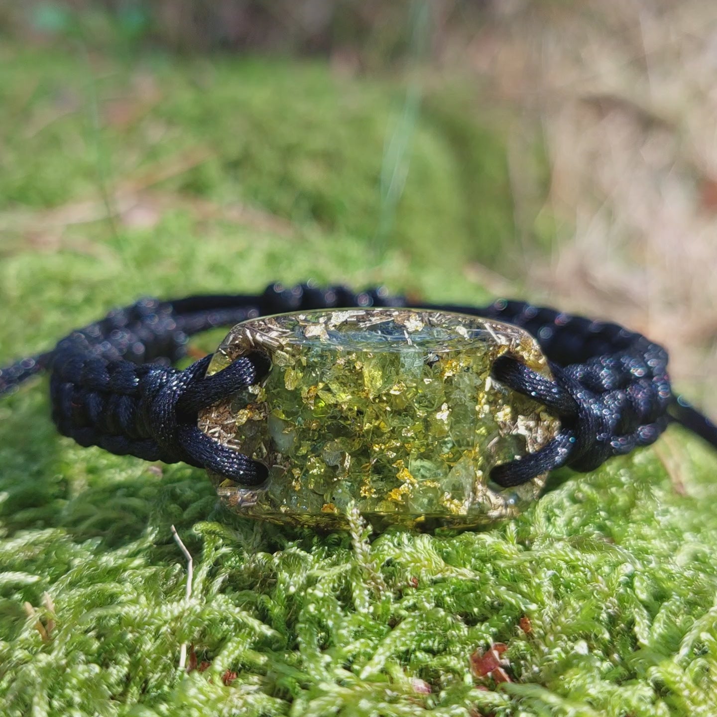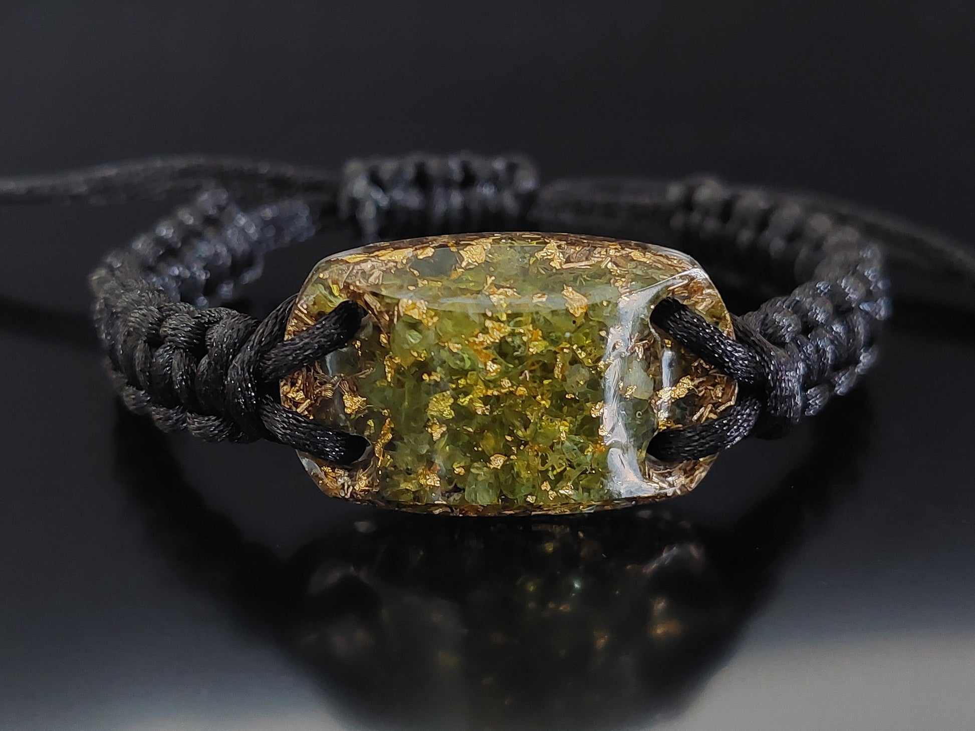 Pulsera de orgonita de peridoto con oro de 24k y virutas de latón - riqueza, dinero, éxito, amor, curación, manifestación, meditación...