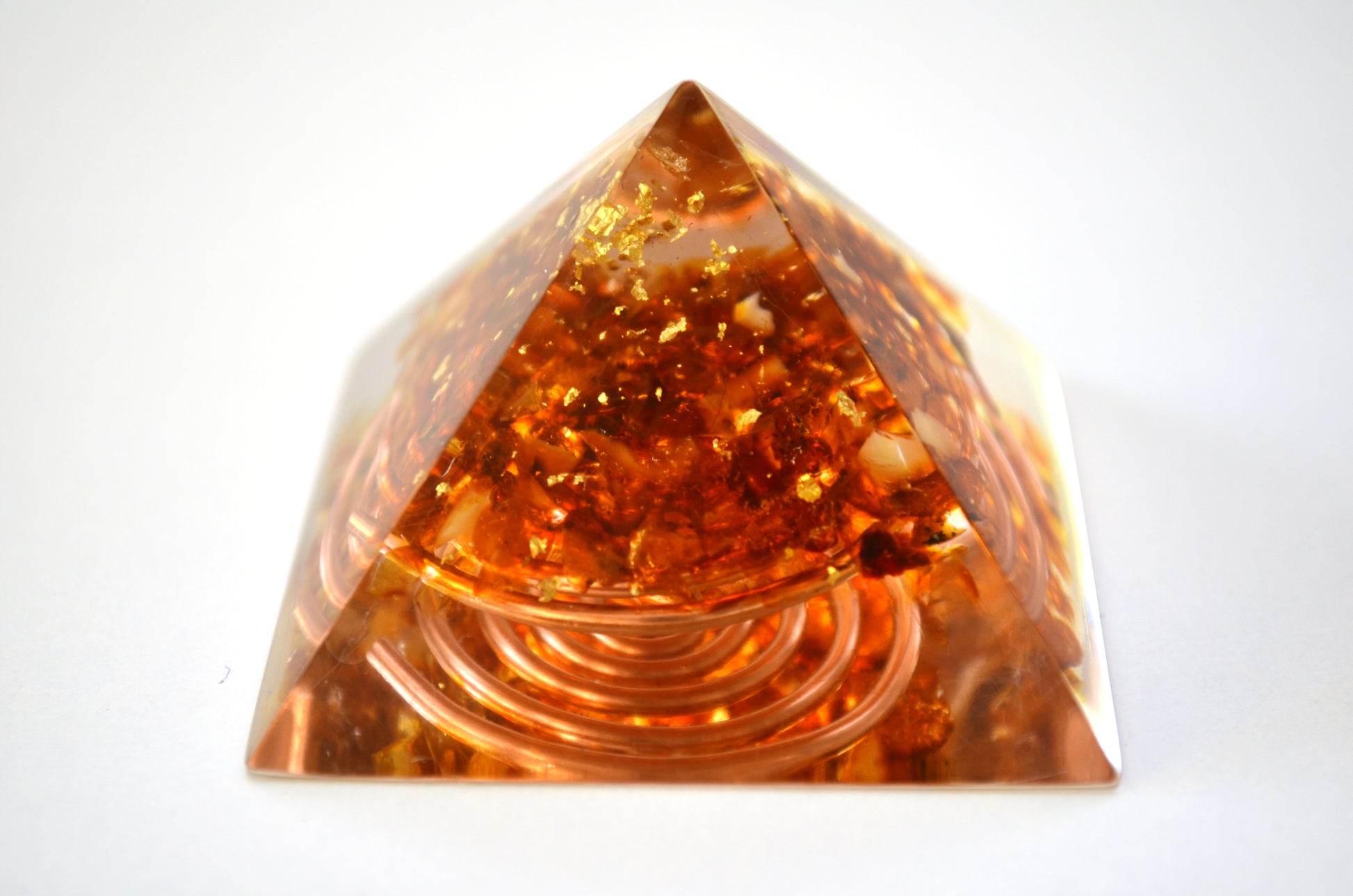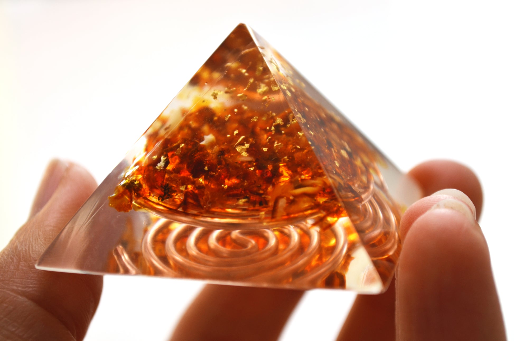 Orgonite Pyramid - Natural Baltic Amber and 24k gold, wealth, protection, reiki healing, meditation