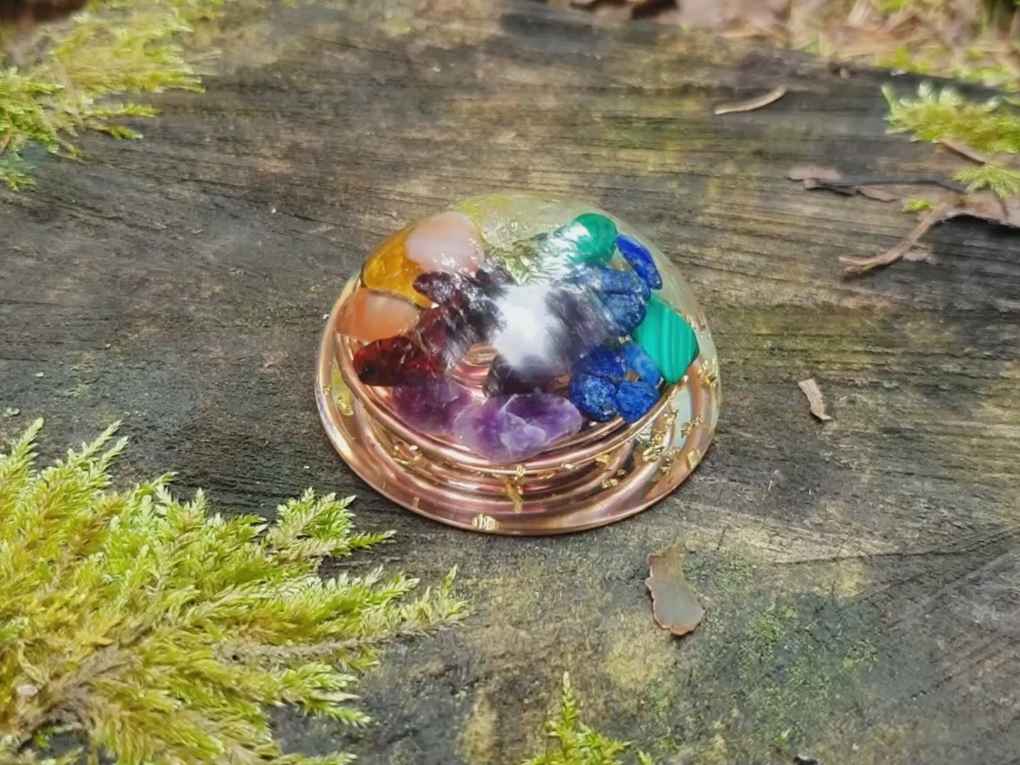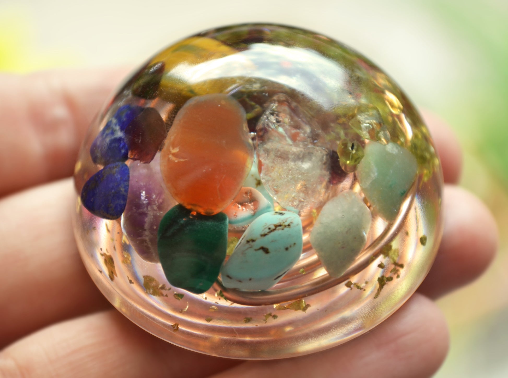 Pocket hemisphere orgonite dome - 7 chakra healing and charging, wealth, money