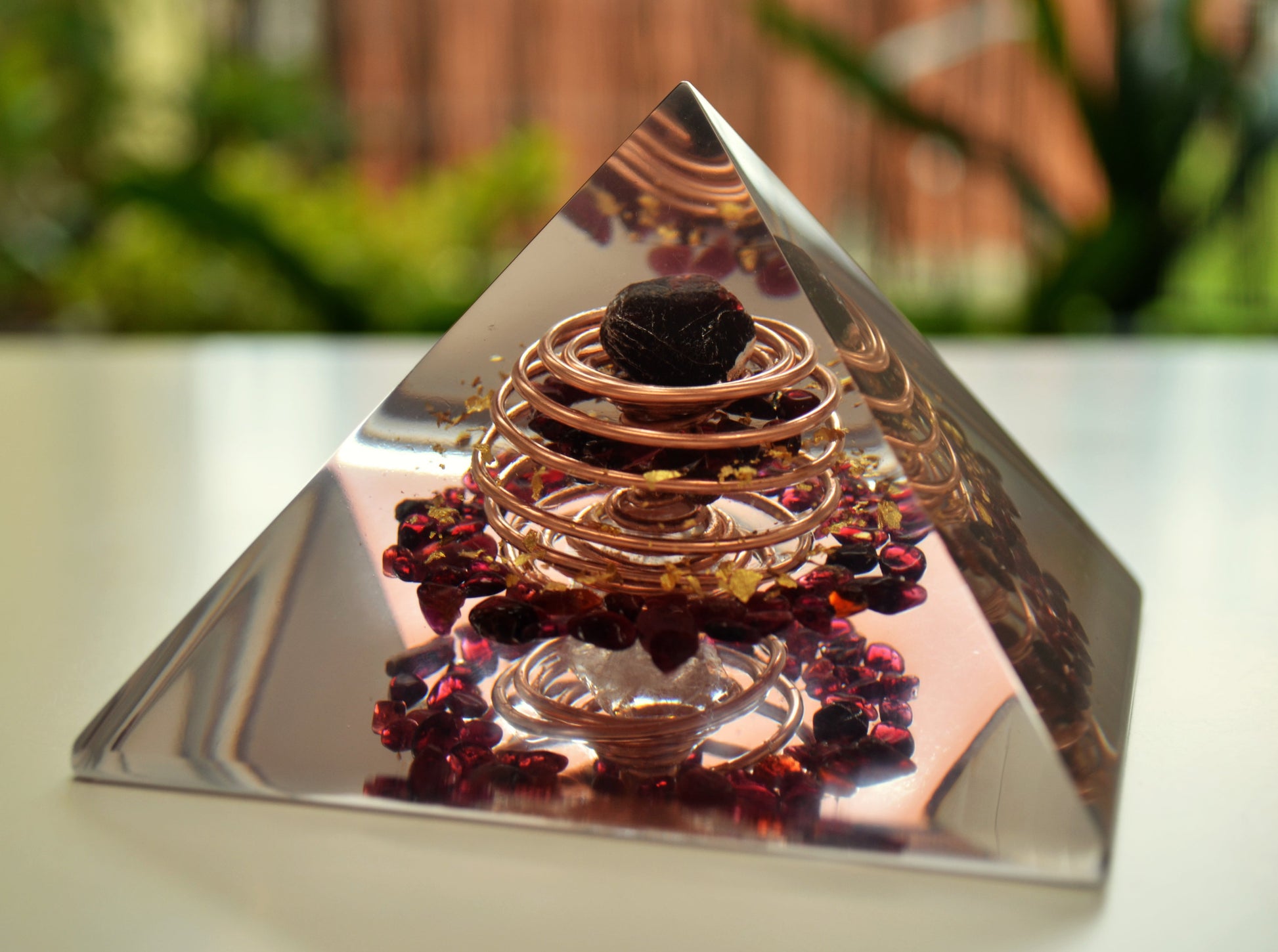Powerful Orgonite Pyramid, garnet, almandine, quartz, vortex coil, Wealth, Money, Sexuality