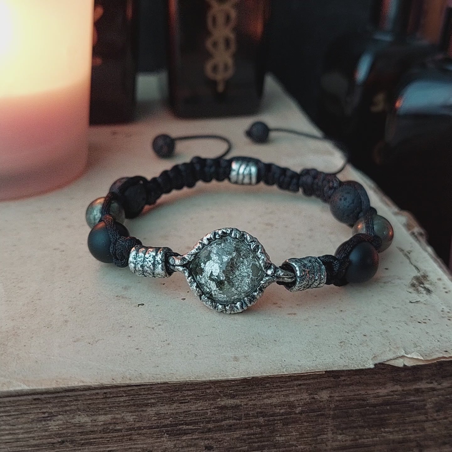 Beads 10mm: natural black onyx, pyrite, lava stone