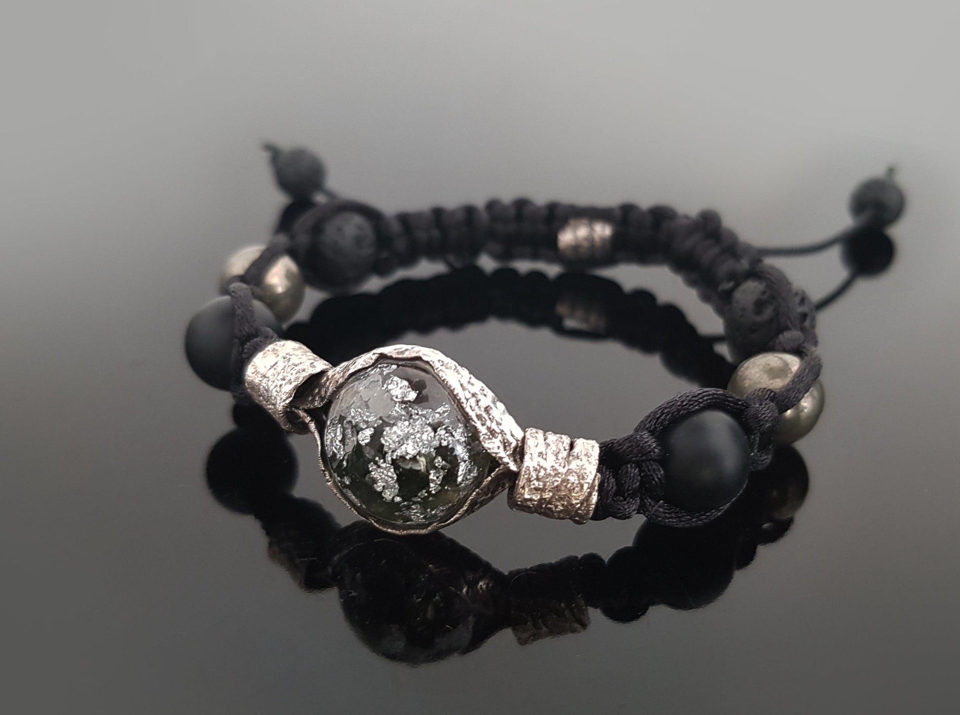 Powerful Shamballa orgonite bracelet with most powerful combination - Moldavite, diamonds and herkimer in pure 99,9 silver. Onyx, pyrite, lava stone, 99.9 pure silver beads, reiki infused and programmed, enchanted magic Amulet, Talisman, wealth, protection amulet, Reiki charged.