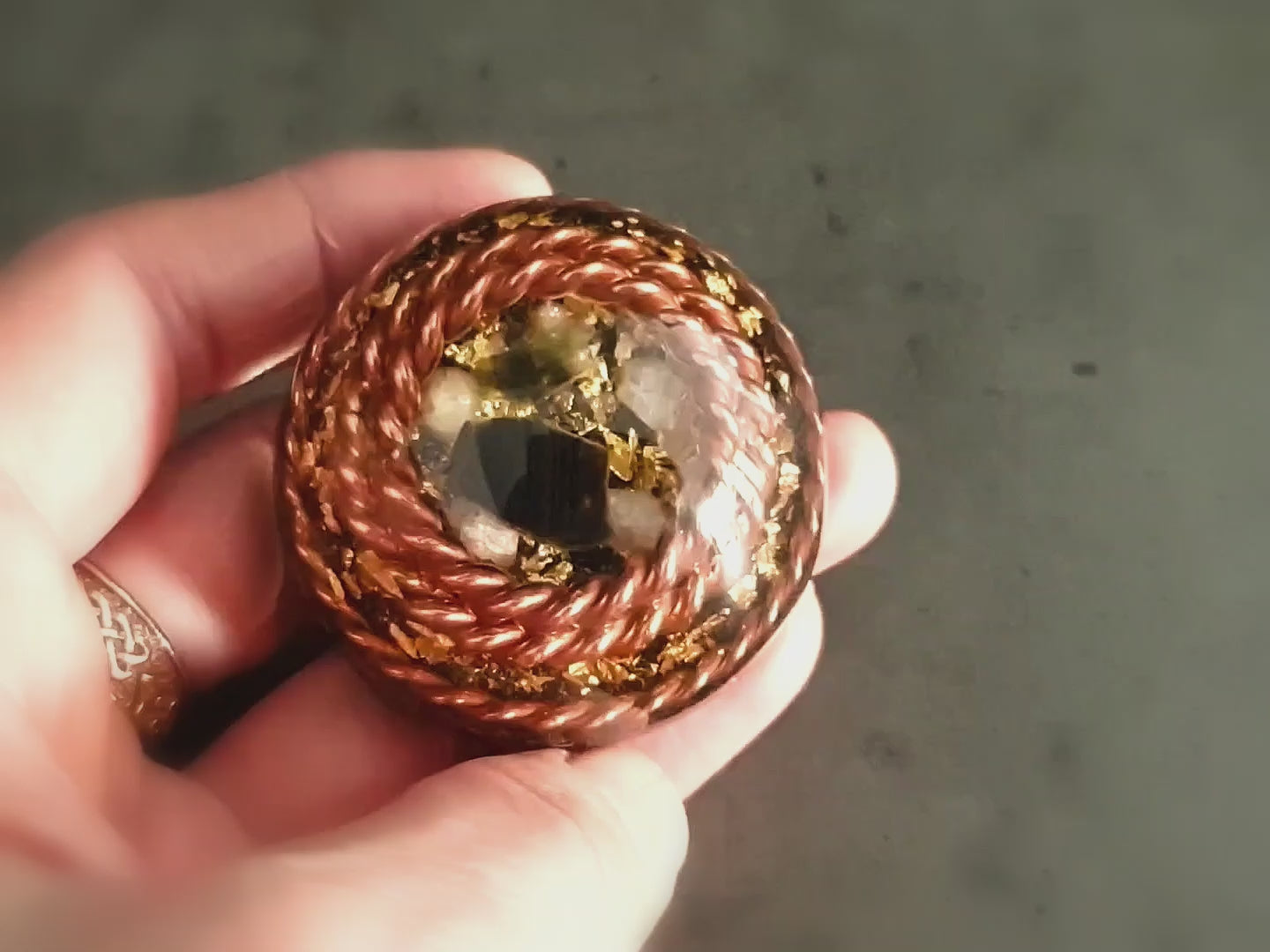 Orgonite dome / hemisphere, Powerful programmed amulet with 3 Tensor rings