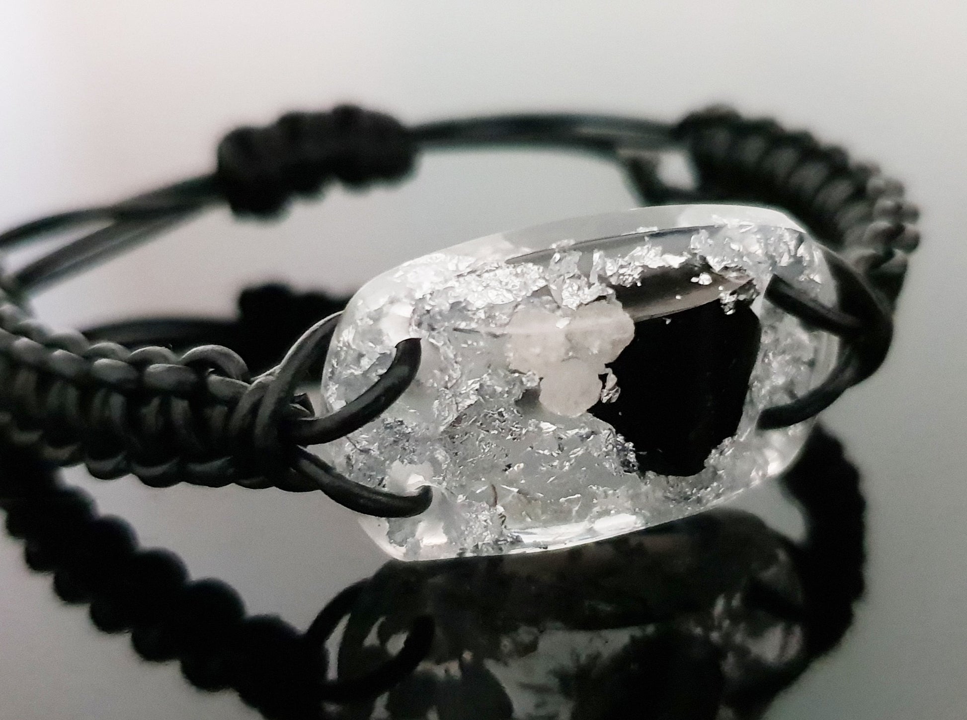 Orgonite orgone bracelet amulet. Reiki crystal chakra bracelet. Diamonds, Black tourmaline, Herkimer, EMF protection. Very powerful, specially designed and programmed bracelet for protection, harmonization, and manifestation. This bracelet cleans and expand the energy field and protects from any negative or destructive influences, protecting from EMF.
