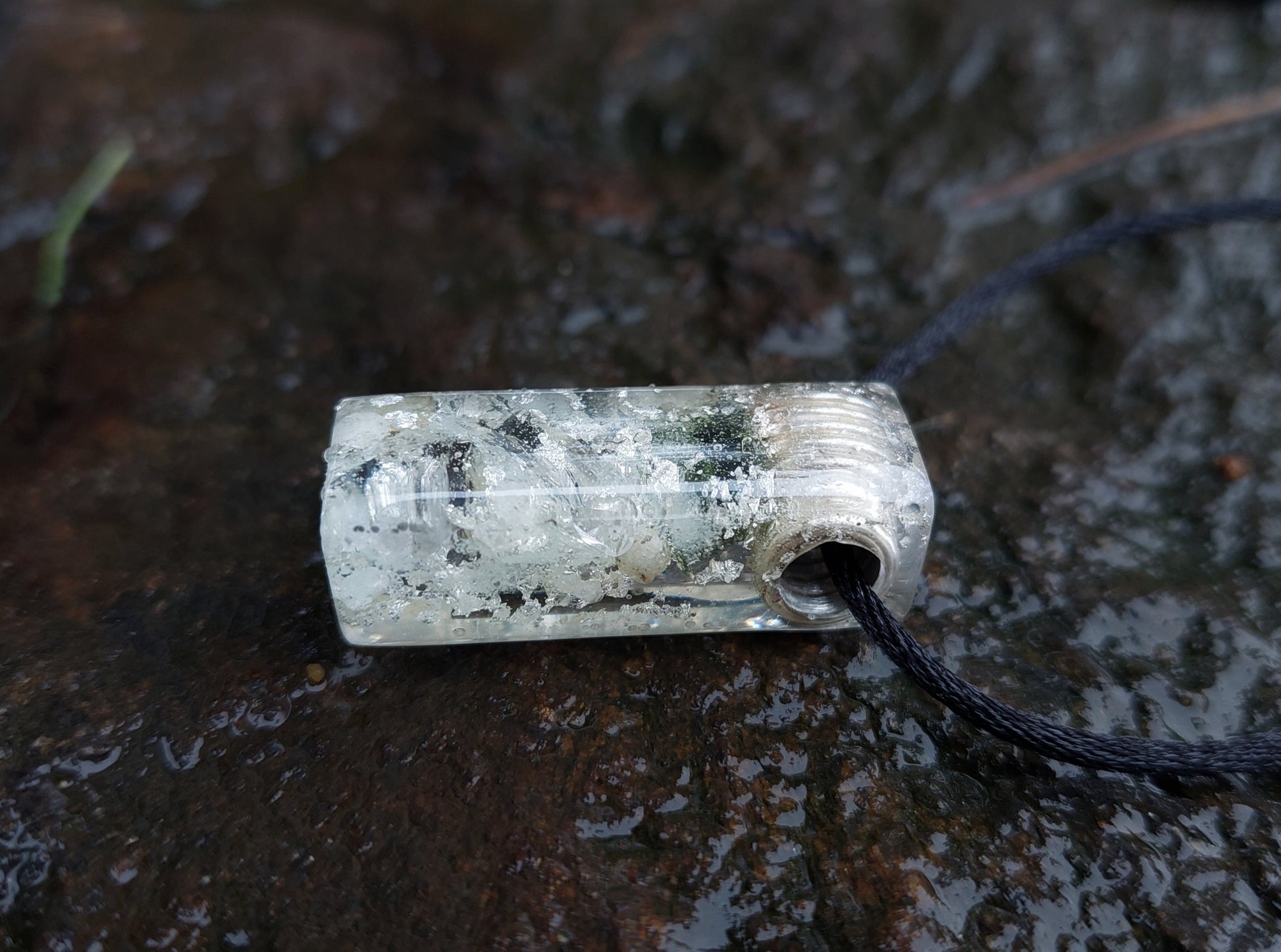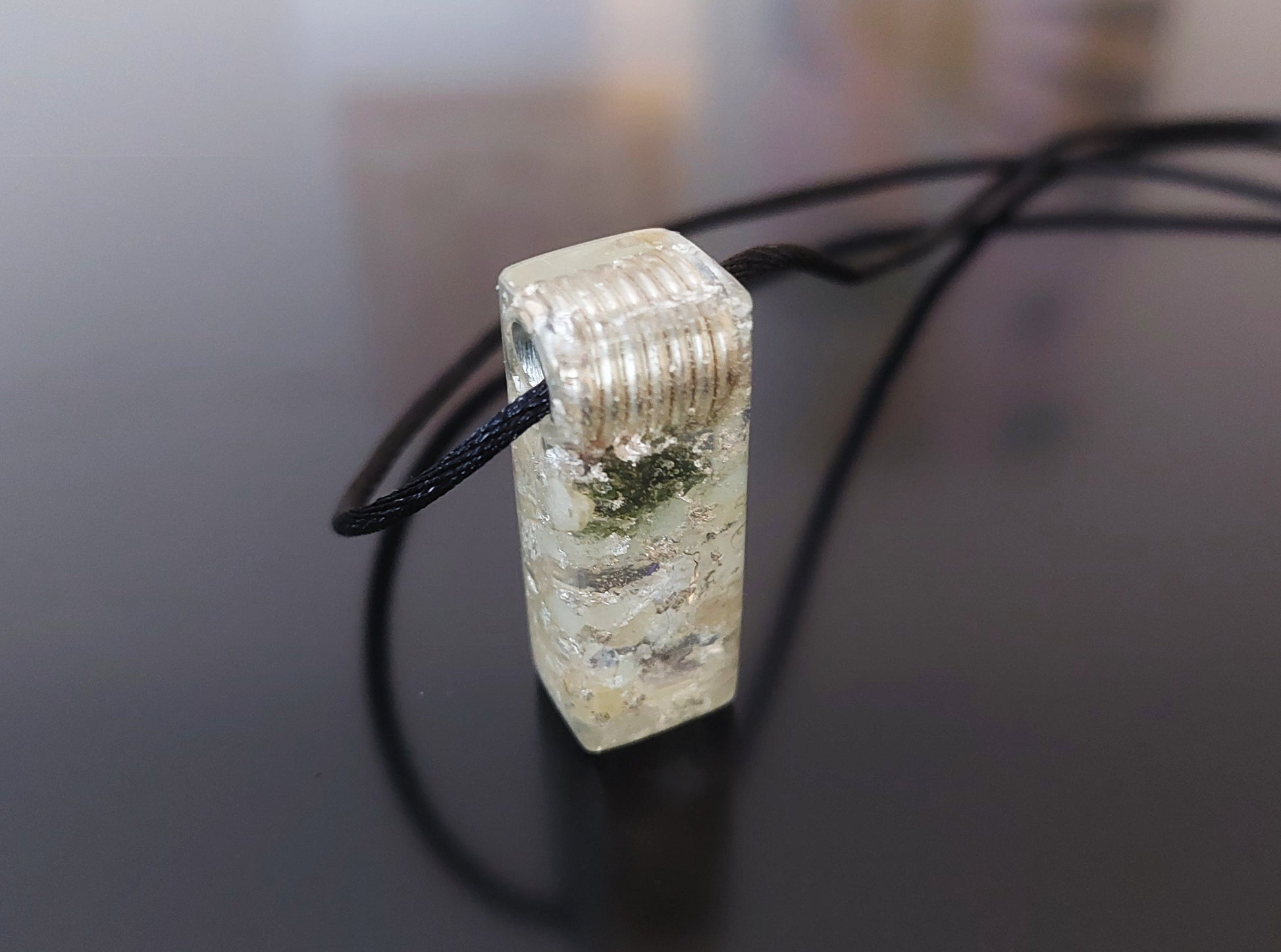Glow in the dark!!!!! For the glow in the dark effect, an pendant must be charged in the sun. If you do not want a glow in the dark effect, I can make pendant without it, but write in the comments that you do not want it.
